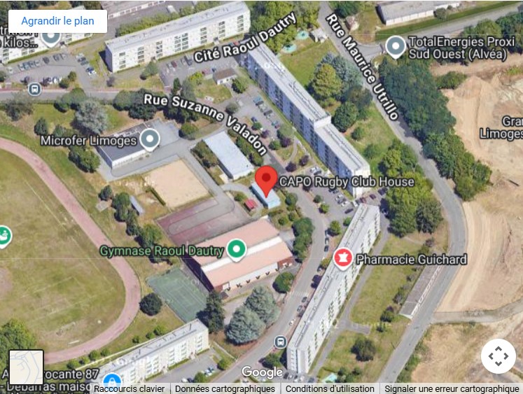 Situé 36 rue Suzanne Valadon à Limoges, le stade Raoul-Dautry est le cœur battant du CAPO Rugby. Ce lieu emblématique, témoin de générations de matchs mémorables, reste le temple du rugby cheminot limougeaud. C’est ici que nos jeunes découvrent l’ovale, que nos seniors défendent nos couleurs, et que se perpétue l’esprit familial qui nous définit.